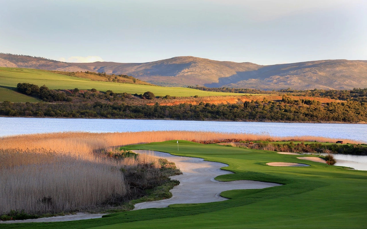 Arabella Golf Club is set dramatically on the edge of Bot River Lagoon. This wetland is home to thousands of waterfowl, so keep your eyes peeled for the Blue Crane… this beautiful bird is even the Arabella club emblem. The prolific architect Peter Matkovich laid out Arabella on what was originally stony farmland. There was plenty of clearing to be done, “ you could not even walk next to the lagoon,” said Matko. So, in 1998 after a fair amount of earth moving and felling of invasive trees, Arabella opened for play to a rapturous standing ovation.